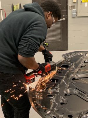 Chicago Pneumatic donated tools for the ATC's Collision Repair Center, so students could put them to use rebuilding cars at the school. Teacher Mark Dellinger says the CP8345 4 1/2" Cordless Angle Grinder and CP8849 ½” Cordless Impact Wrench have held up well under hard-core classroom use by teenagers. The grinder made a big "impact" on him, in particular. "I've used tools for years now, and that tool impressed me," said Dellinger. He especially liked the amount of power shown by the battery-operated tools, which he says are not like the batteries of yesteryear. "I was surprised by the power it had!" he remarked. Dellinger points out that the new lithium-ion batteries are similar to those used in computers, so they hold their charge a long time and recharge quickly -- both valuable qualities in a classroom setting, where the same tools are used again and again during the day. Chicago Pneumatic also sends its experts to speak to ATC classes, and has provided gloves and T-shirts to the hard-working students.