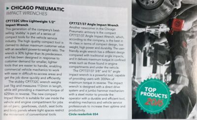 Chicago Pneumatic’s CP7732C, CP7727 and CP7737 compact impact wrenches have been voted ‘Top Products 2016’ by the readers of the Commercial Vehicle Workshop magazine.
